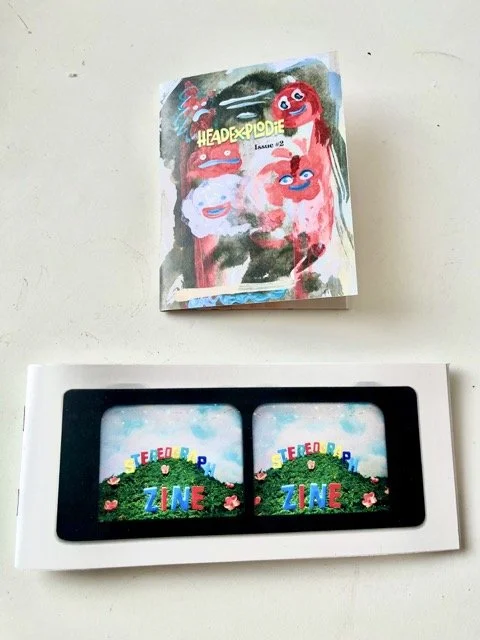 Personal essays and art. Glossy color postcard machine stitched onto each front cover.